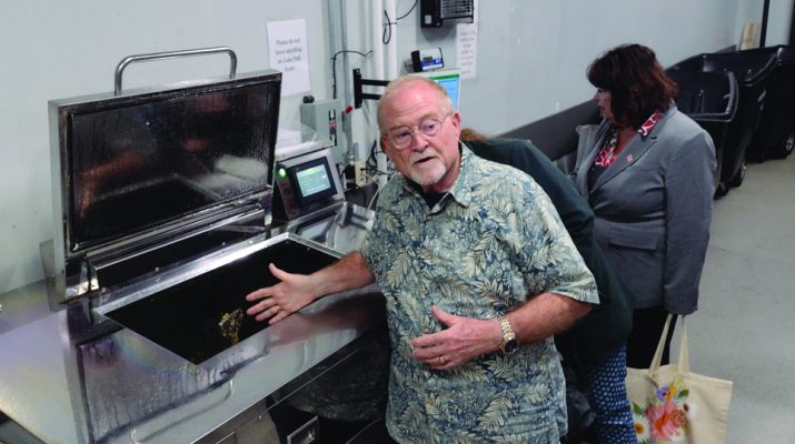 Selleck Dining Center, last on the tour, was a great place to view the demand for reusable containers called Ozzi’s. Matt, the manager, said, “When they get food they can get a reusable container and get a pass getting them back when they’re washed. (Students) get a reminder every two days if they don’t return them.” The return rate, however, has continued to climb. Selleck also features a hydroponic farm for micro greens featured in the meals.