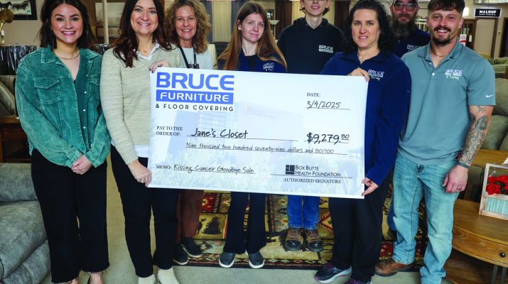 The “Kissing Cancer Goodbye” sale proved a great success in its first year. Jane’s Closet, a financial assistance program in Alliance, received $9,279.80! Jane’s Closet is just one of the philanthropic programs managed by the Box Butte Health Foundation. Recipients of Jane’s Closet funds receive financial assistance for a variety of needs related to cancer treatment. Other organizations that received funds from the sale include Circle of Light in Chadron, Festival of Hope in Scottsbluff, and C.A.R.E. Foundation in Gordon. BBHF is grateful for the generosity of Bruce Furniture and the community.