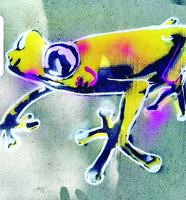 Professor Williams designed seven stencil sets of endangered animals including a Tiger, Tree Frog, Axolotl, Black Footed Ferret, Panda, Big Horn Sheep, and Rock Hopper Penguin. Each stencil set included three layers with different levels of detail to create depth and contrast in the images. Six sets were created for each animal. In total, Professor Williams created 42 sets which equaled 126 total stencils. The ARC’s total attendance of 60 youth were broken into classes of 15. The groups rotated throughout the morning, pairing off in twos and threes with the instructors and ARC teachers. The instructors first demonstrated how to use the cans of spray chalk over the layers of stencils to create crisp outlines. Students worked in teams and took turns selecting their colors and spray chalking the stencil layer while their teammates helped hold down the stencils. Each finished stencil set was a collaborative masterpiece. It was essential to Professor Williams’ process that the children were able to maintain the decision-making power by selecting the animals they wanted and the color combinations. The results were unexpected and stunning. Quotes from students during the project included a shouted, “This is the best day ever!” and “I can’t believe you are letting us do this!” Executive Director of the Alliance Recreation Center Mara Anderson stated, “Watching the kids have fun is always rewarding, but seeing the magic Carnegie Arts Center and the University of Nebraska-Lincoln staff and students shared with our Summer camp was truly something spectacular. We cannot say ‘thank you’ enough to everyone. The kids had a great time, and they were so excited every day that week for all the art projects.” We were pleased to hear that students were eager to pull their parents out to the walking path to show off their masterpieces.