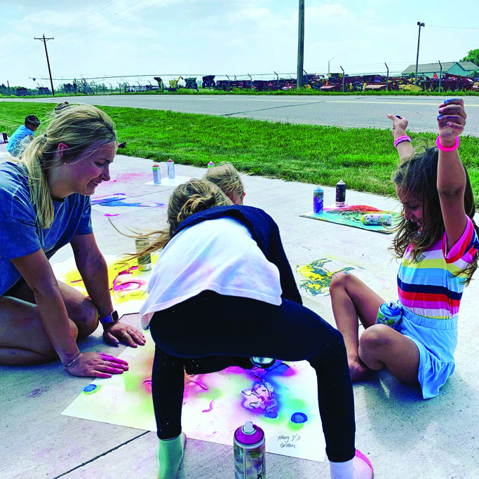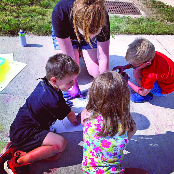 Carnegie Arts Center had an incredible week working with the Alliance Recreation Center’s Summer youth camp. Visiting artist Professor Sandra Williams from the University of Nebraska Lincoln and two Honors students traveled across the state to bring “Stay Wild” Sidewalk Safari to Alliance, NE. The project was the brainchild of Professor Williams who had developed the project initially in partnership with the Museum of Nebraska Art. Her exhibit, “Anthropocene Blues” opened at MONA while they were closed for COVID in 2020. The museum proposed having a virtual lecture series. However, Professor Williams believes, “Community based arts have always been, and always will be, part of my creative agenda. Instead of a ‘top down’ lecture I prefer that the community explore the role arts play in creative placemaking, having the tactile experience of handling ‘cut paper’ in the form of stencils, and engage with the topic of animals in a creative manner. ‘Stay Wild’ provides an opportunity for public interaction with my work in a safe, socially distant manner. Although necessitated by the Museum’s closure, the model can apply in other contexts.”