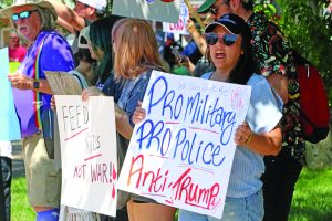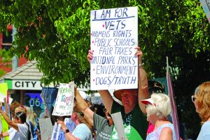 An older woman at the rally, who asked not to share her name, said she remembers watching newsreels of Hitler as a girl at the local theater. The “atrocities of war,” she said reminded her of aspects of the current president. Many of the rallygoers were antagonistic toward the current president, but the rally’s theme remained positive.