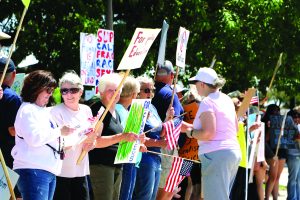 Shannon Garwood said they counted at least 150 people at the Saturday morning rally and numerous supporters driving by, honking and waving in support. Two or three naysayers made their displeasure known with their middle finger and Make America Great Again headgear.