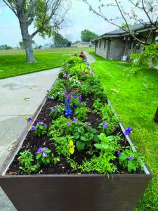 Garrett built raised planter beds that are wheelchair accessible for residents at Highland Park Care Center. He explained that the gardeners can roll right underneath as they water, weed and enjoy the flowers and plants. Garrett started in the fall of 2024 and finished this past spring in time for planting.