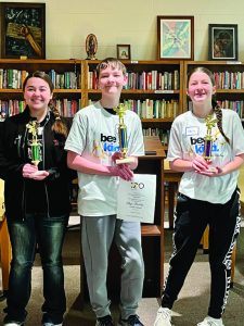 Last Tuesday, students gathered at St. Agnes Academy to showcase their spelling skills at the Box Butte County Spelling Bee where Gage Finkey, a student at St. Agnes Academy, was crowned the champion speller. Stella Beck, SAA student, took home the hardware for second place and Delilah Long, of Hemingford, claimed third place in the spelling bee.