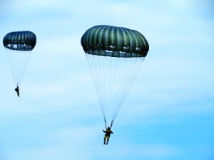 Paratroopers filled the skies over Chimney Rock recently as they descended on one of Nebraska’s most iconic landmarks as part of a celebration of National Airborne Day.