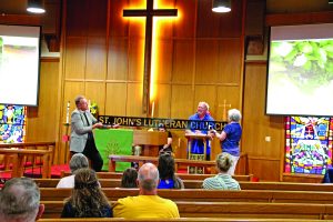St. John’s Lutheran, and members of the community dedicate the new St. John’s Greenhouse Ministry by praying over it during a ceremony hosted on June 29, 2025. The new greenhouse allows the congregation to grow a variety of foods year round that benefit the community.